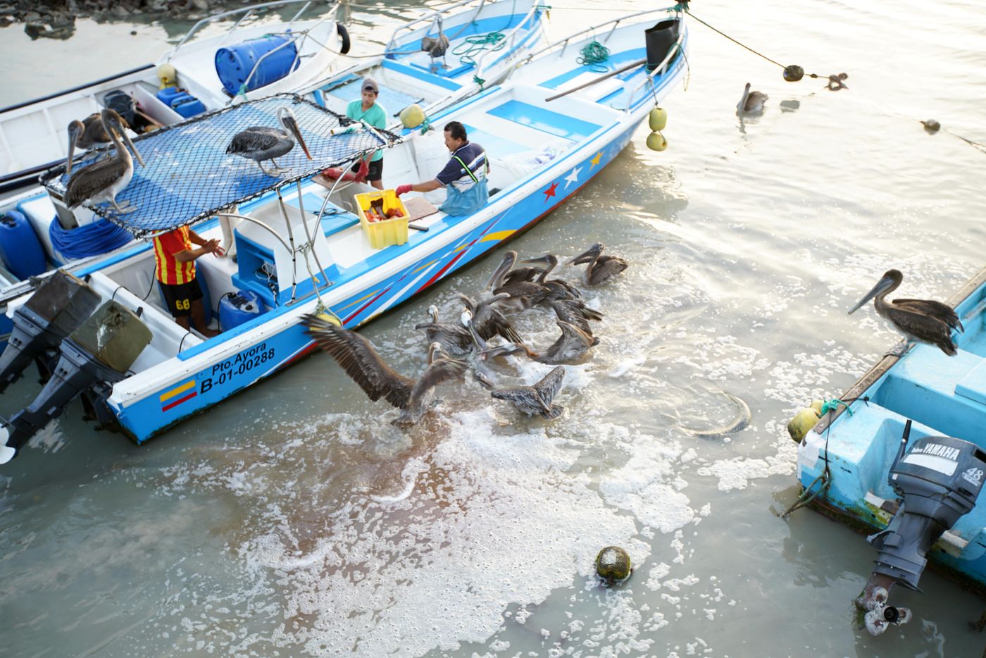 还有数量众多的海鸟,在海陆空的交界处徜徉,在渔民们打鱼归来时争抢着案板上落下的美味。其中有粉红的火烈鸟,与天空、海洋和湖泊形成毫不妥协的反差,时不时在一片蓝色和绿色的静郁中划出一道道艳丽。